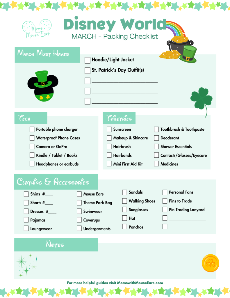 Download our Disney World March Packing Checklist