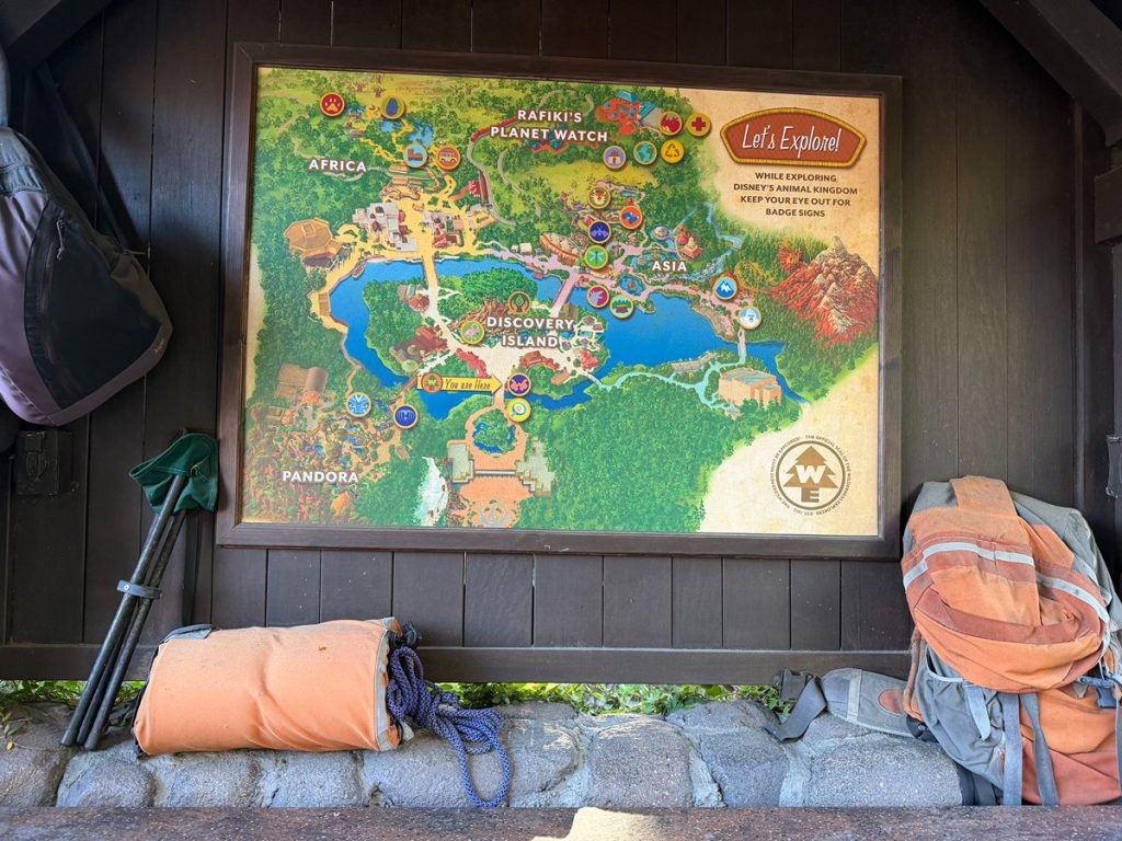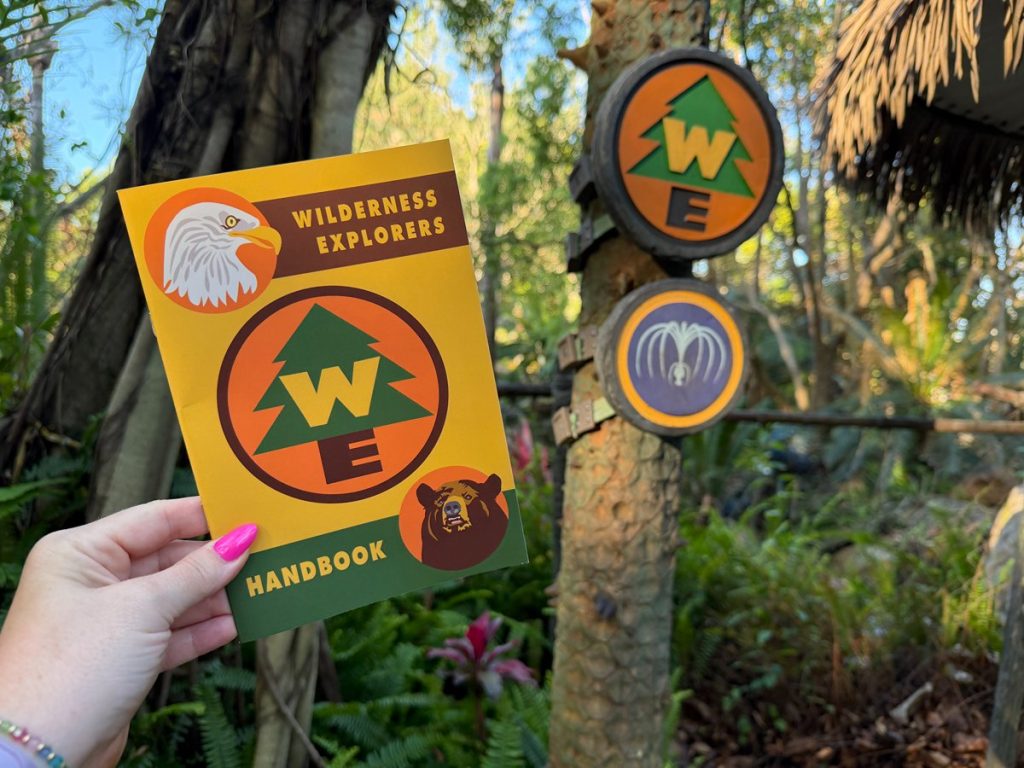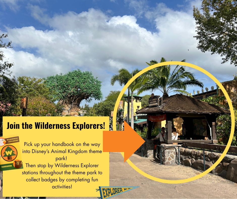 Wilderness Explorers activity spots are located throughout Disney’s Animal Kingdom. It gives families a fun reason to explore different areas of the park, stop and talk with Cast Members, and learn more about animals, nature, conservation, and wilderness skills.
